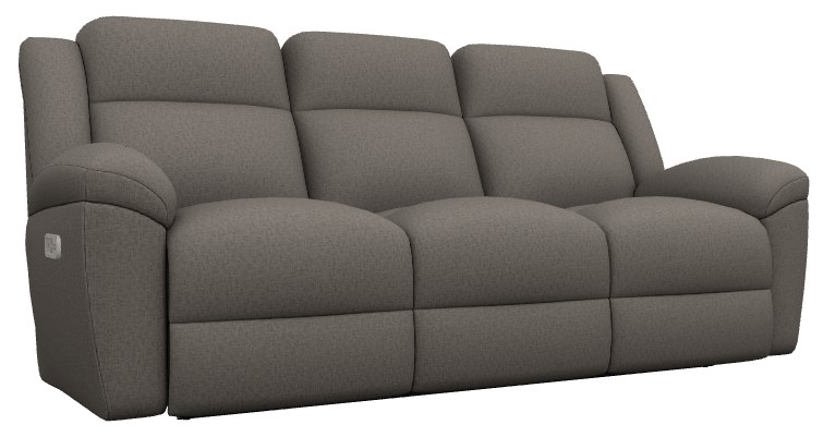 The Joel Power Reclining Sofa with Headrest features flared arms, lush cushions and comfy, casual style. Pillowy arms welcome you, then press the button to adjust the backs, headrests, chaise seats and legrests—your tv binging just went next-level!Read More